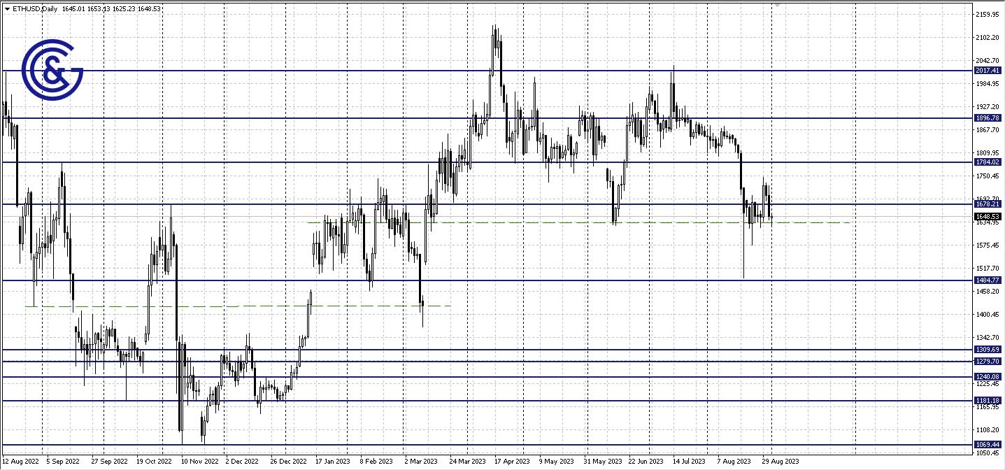 Following this week's uptick, the Ethereum price has retraced its steps to the support at 1631.70 marked with dotted lines. From a technical standpoint, ETH/USD may rebound to the highs of the current week, which are at 1746.96, from here, or it might break out and consolidate below it. When the second scenario plays out, 1484.77 will serve as the target to the south.