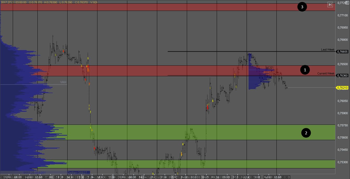 Евро вышло вниз из консолидации и накопленного в ней объема. Цель для продавцов зона 3 и на тесте сопротивления 1 можно искать возможности для продажи. В случае пробоя зоны 1 поиск продаж нужно будет приостановить.
