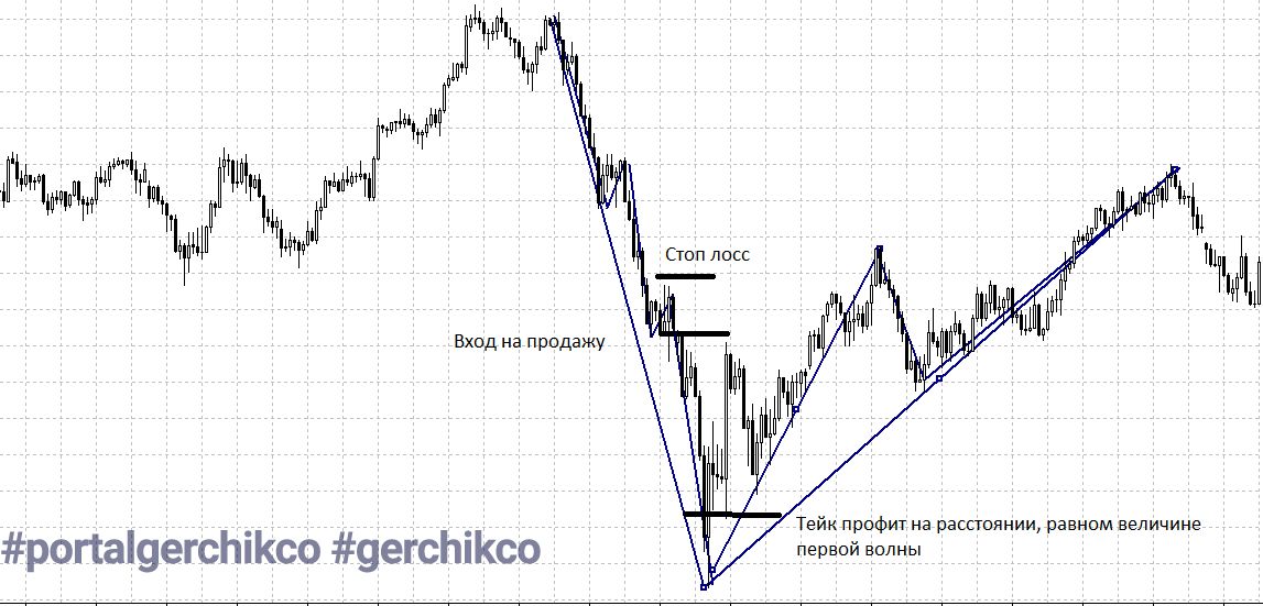 Можно осуществлять успешную торговлю в пятой волне. Необходимо дождаться окончания формирования четвертой волны, затем открывать позицию в направлении основной тенденции на рынке. Стоп лосс следует размещать за ценовой откат. Волна 1 и 5 равны между собой, Тейк Профит следует размещать на расстоянии, равном величине первой волны.