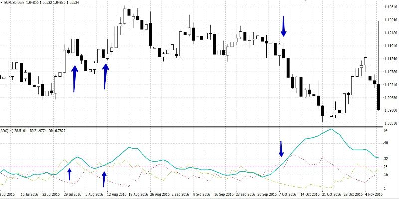 Существует несколько способов выявления сигналов с помощью индикатора ADX. Однако не все из них одинаково хорошо работают.